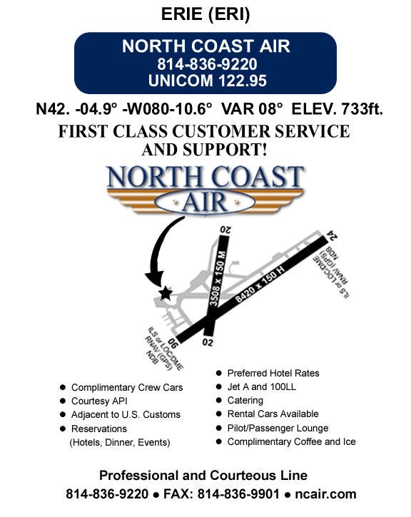 North Coast Air offers the region the best in FBO services, located at the Erie International Airport (ERI) - Tom Ridge Field, in Erie, Pennsylvania. We are dedicated to providing first-class services with an emphasis on quality, safety, value and customer satisfaction.